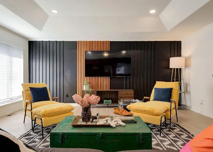 The Lake Hefner is located 850 metres away, and Santa Fe train station is 30 minutes away by car. The 2-bedroom holiday home is just 1.7 km from the recreational retreat "Duffner Park".